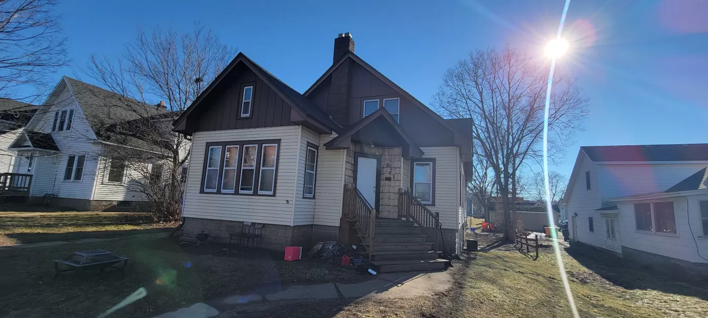 This lower duplex features a 12’x28’ living room with faux fireplace, a 15’x15’ dining room, arched doorways, four spacious bedrooms, two bathrooms with a Jacuzzi tub in the downstairs bathroom, dishwasher, and a walk-out basement with laundry. There is ample off-street parking behind the house.